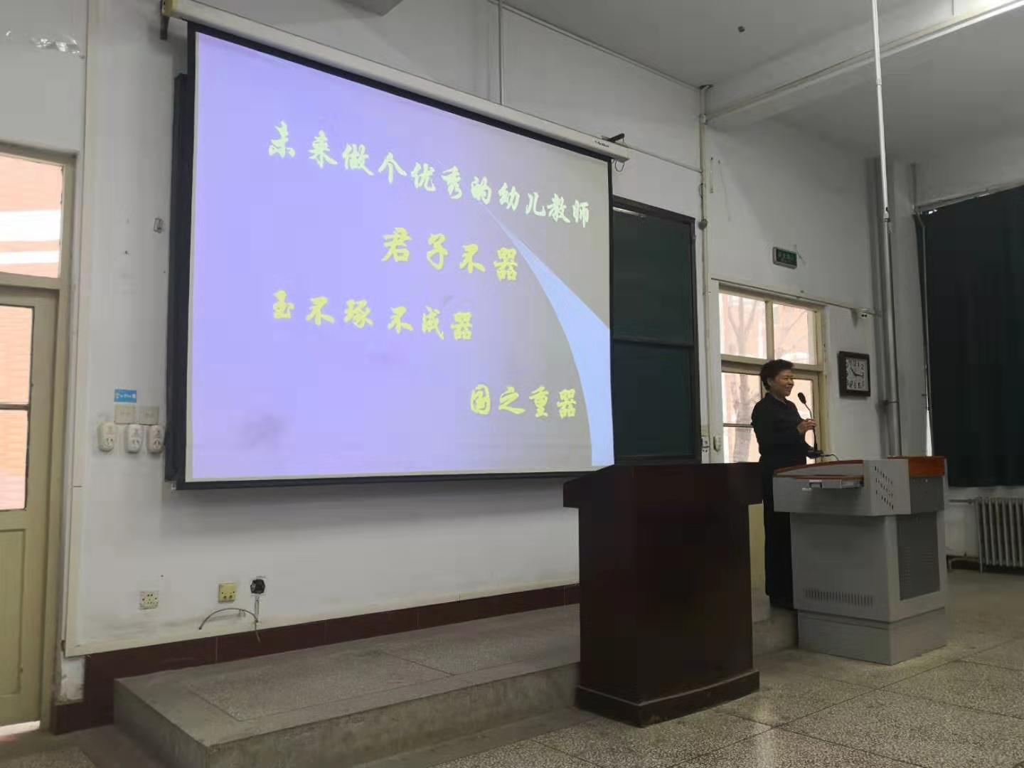 2019年12月17日,新乡市市直一幼园长李秀梅在公司A11-120为公司2019级教育学类员工做题为《未来做个优秀的幼儿教师》的专题报告。