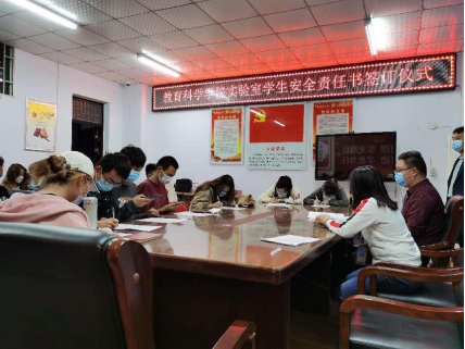 何冬丽副经理首先强调了实验室安全卫生管理工作的重要性,作为实验教学的重要场所,实验室安全卫生是一切实验室工作正常进行的基本保证,只有落实好安全卫生工作的常规管理,才能有效地保障实验室安全。何冬丽副经理希望各位员工安全管理员能够思想上高度重视,树立“责任重于泰山”的意识,认真贯彻“安全第一、预防为主”的方针,落实“谁使用、谁负责”的原则,主动协助任课教师落实实验室安全管理责任,确保每个房间、每台设备、各种隐患,都有专人负责、有专人监督,有章可循、科学管理。随后,郭韶敏主任给同学们详细介绍了安全负责人的职责范围和工作要求。最后,董生亮老师给每位同学分发了beats365唯一官网实验室安全卫生责任书一式两份,各位员工安全负责人认真签定了责任书。同学们纷纷表示一定高度重视安全卫生工作,坚决担负起自己的工作职责!