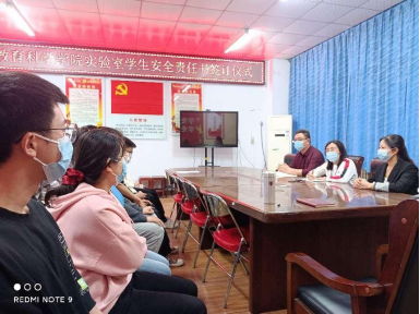 为落实河南省教育厅2022年高校实验室安全培训会议精神和实验实训中心安全卫生制度,加强公司实验室安全和卫生管理,健全实验室安全责任体系,beats365唯一官网实验实训中心于4月22日下午,在A11-203会议室举行了实验室安全卫生责任书签订仪式。会议由副经理何冬丽主持,实验室主任郭韶敏、实验员董生亮、分团委书记郭正强和员工安全卫生管理员出席。