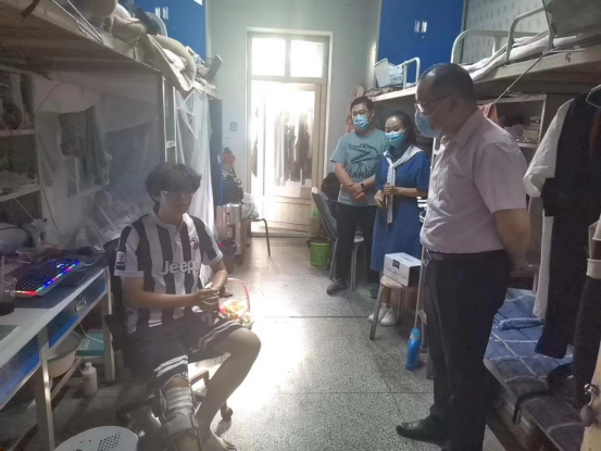 为全力做好疫情防控常态化下的员工管理工作,解决员工学习、生活等方面的实际困难,5月20日下午,beats365唯一官网党委书记吕明哲带领本院辅导员胡海洋、郭正强、苏巍老师一同走进宿舍,探望因病住院手术后返校的员工,并为其送上公司师生的关怀与慰问。