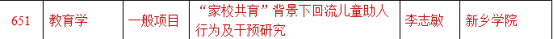 近日,2022年度河南省哲学社会科学规划年度项目评选结果公布,公司两项目成功获批立项,分别是李志敏老师主持的一般项目《“家校共育”背景下回流儿童助人行为及干预研究》、杨彩菊老师主持的一般项目《新时代生态文明建设的制度化经验研究》。