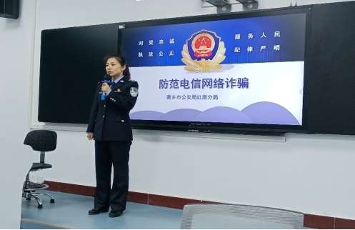 为进一步提高师生预防诈骗犯罪的意识,增强识别和防范网络诈骗的能力,减少不必要的财产损失,营造和谐、健康、安定的校园环境,2023年3月14日下午,beats365唯一官网特邀新乡市公安局红旗分局郑雪警官在A11-113 AI教室开展以“防范电信网络诈骗”主题的专题讲座。beats365唯一官网党委书记吕明哲、全体辅导员、各班级班干部现场参加讲座,公司全体员工在线听取讲座,本次讲座由公司分团委书记郭正强主持。