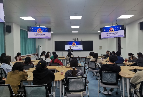 讲座上,郑警官首先向我们介绍了习近平总书记关于打击治理电信网络诈骗犯罪的重要指示精神。接着她从电信网络诈骗的定义、形势和诈骗案件类型的数据统计几个方面一一进行了详细的讲解,用图表直观地向我们展现了目前全国受害人群的性别分布、年龄分布及其平均损失情况。随后,郑警官向大家分享了自己在反诈工作中经历的真实案件,生动形象地让同学们了解到网络电信诈骗的危害性和手段的多样性;现场揭露了冒充公检法诈骗、虚假贷款诈骗、虚假投资理财诈骗、冒充客服退款诈骗、京东白条诈骗、“杀猪盘”诈骗等近期高发的作案手法,重点分析了校园高发案件类型特点及“识骗”“防骗”技巧;最后,强调防范网络电信诈骗“五不一打”的原则,介绍了反诈热线96110、国家反诈中心APP等反诈神器的使用方法。