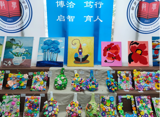 挥动梦想翅膀,创造艺术人生。在公司专业艺术技能教研室老师们的指导下,同学们有的用手中的画笔,诠释身边的美,将灵感融于指尖,展示独属于心灵的绚丽;有的将生活中的知识再现于可爱的剪纸作品中,宣扬传统节日与习俗,普及安全知识。除此之外,还有扭扭棒花瓶工艺品、石膏涂色、黏土装饰作画等多种艺术形式,学前教育专业和小学教育专业的员工,在结合本专业发展方向的背景下,展示了美术艺术的魅力,同时为同学们带来美的冲击,提高了艺术鉴赏能力。