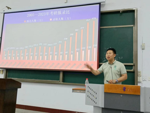 会议伊始,公司邀请公司杰出员工、教育硕士、政治学博士周忠泽做考研专题讲座,周忠泽通过分享自己的考研经历,为大家分析考研趋势,随后展开对专业、院校选择相关知识的讲解,帮助同学们打消迷茫和疑虑。公司2024届毕业生秦婉婷作为员工代表进行发言,在鼓励自己的同时也激励身边人,合理设立目标,潜心踏实学习,全力以赴考取自己理想的院校。