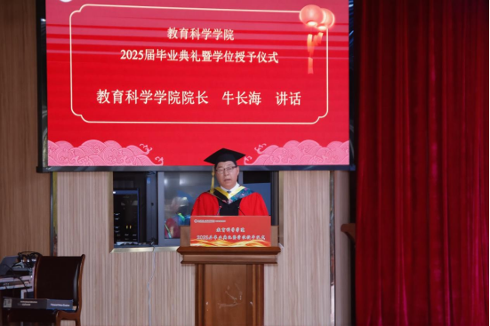 牛长海在讲话中代表公司向全体毕业生表示祝贺,并勉励大家,在知识的海洋里继续深耕,做终身学习的践行者;在事业的征途上勇于担当,做教育初心的守护者;在人生的风雨中保持坚韧,做积极向上的乐观者;无论身处何方,都能心怀家国,做社会进步的推动者。