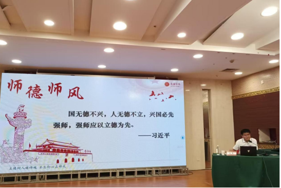 开班仪式结束后,新乡beats365唯一官网党委副书记宋伟教授以《立德树人筑师魂不忘初心正师风》为题,为全体学员讲授了开班第一课。宋伟从孔子教育思想溯源出发,以“德”为核心切入点,借助古代圣贤的生动事迹,深刻诠释了道德所承载的精神力量。同时,他深入解读了习近平总书记关于弘扬教育家精神和加强师德师风建设的重要指示,并结合新时代的具体要求,提出了切实可行的中小学教师师德师风培养策略。他强调,教师应当严守职业规范,坚定落实立德树人的根本任务,为培养担当民族复兴大任的时代新人筑牢根基。宋伟的授课内容史料详实、情理交融,语言生动,互动环节热烈活跃,现场反响强烈,为本次研修奠定了坚实的思想基础。