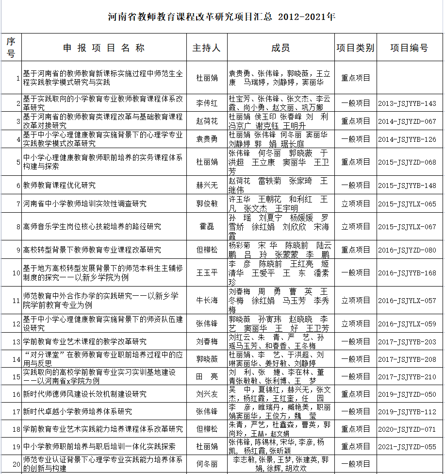 beats365唯一官网现有心理学、小学教育、学前教育三个本科师范类专业。如何能有效实现师范生的培养目标是我们的核心任务。公司一直致力于教师教育课程改革方面的工作,在院领导的带领下,各基层教学组织的相互配合下,公司在河南省教师教育课程改革方面取得可喜的成绩。如下表所示: