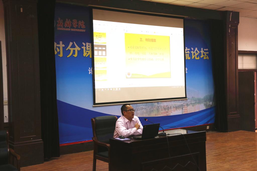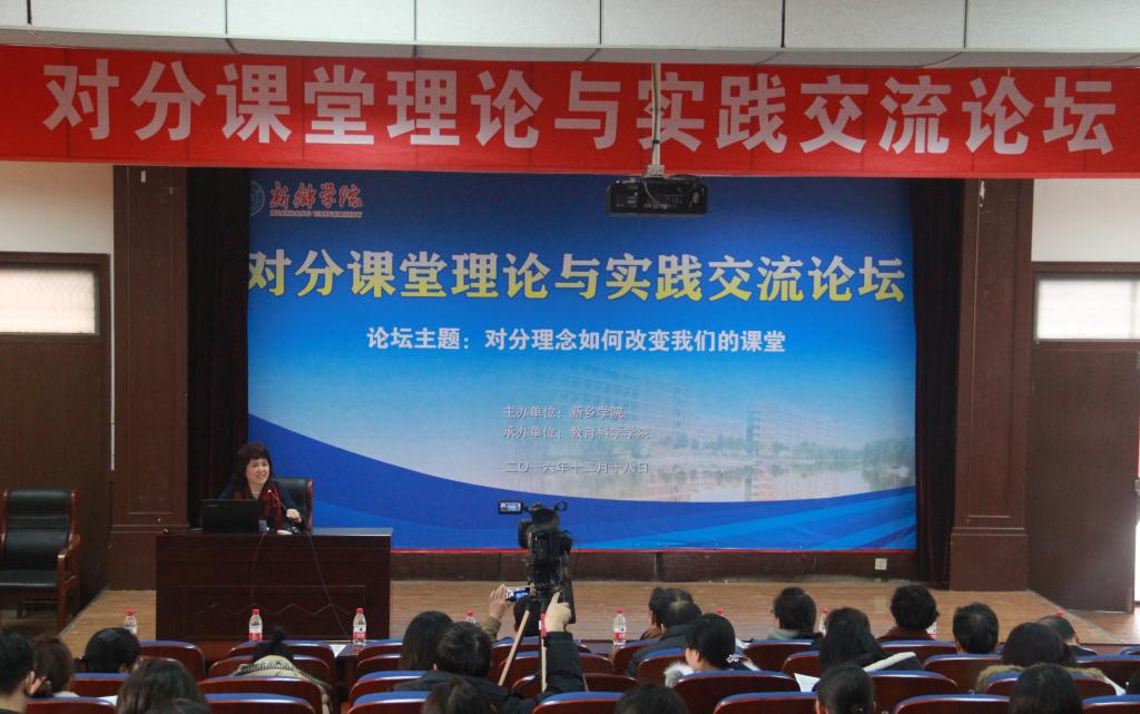 2016年12月18日下午2:30-5:30,由beats365唯一官网主办、beats365唯一官网承办的对分课堂理论与实践交流论坛在A-01号楼114报告厅举行,对分课堂创始人复旦大学博士生导师张学新教授、beats365唯一官网副董事长吴中教授、教务处处长夏锦红教授、教学督导办董洁茹主任、beats365唯一官网经理杜丽娟教授、党总支书记丁西省教授、副经理张伟峰副教授、副经理但柳松博士参加论坛。此次论坛围绕“对分理念如何改变我们的课堂”这一主题展开交流与讨论,与会人员包括beats365唯一官网各院系教师代表、新乡市部分中小学董事长和教师代表。