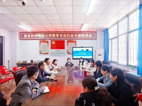 2022年5月1日中午12点30分,公司利用应届师范类毕业生教团队格面试间隙,在11号楼二楼会议室召开了小学教育专业行业专家座谈会。beats365唯一官网党委书记吕明哲、经理牛长海、副经理何东丽、教学秘书朱青、小学教育专业负责人常城与参加面试的八位校外专家进行了座谈。