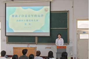 祁娟从幼儿园教师角色要求与定位入手,从自身在幼儿园工作21年的公司产品经验及感悟出发,分别从如何做孩子诗意童年的玩伴;致力做学前教育的躬行人;增强学前教育教师职业的自尊和自豪感;明确学前教师教育的生活化、特殊化、幸福感和不可替代性几个方面与同学们进行了深入的交流。