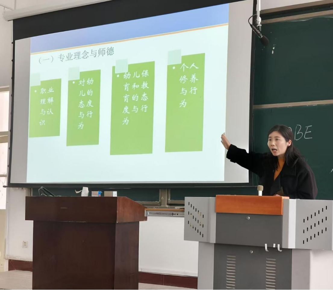 培训中,刘春梅讲解了专业认证的相关知识,解答了员工的问题,并对员工的学业规划进行了指导。邵培莉以“一践行,三学会”为主题,讲解了幼儿园教师专业标准。接着副经理张婕从专业定位、培养目标、培养要求、核心课程、毕业要求和教学计划表六个方面讲解了学前教育专业人才培养方案。最后副书记李彦对会议内容进行总结,引导同学们站在时代发展的高度,正确认识并展望学前教育专业的广阔前景,鼓励大家将今日所学转化为明日所用的实践能力。