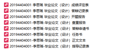 二级文件夹标题:每个员工的毕业论文(设计材料)应包括以下内容(以李思瑶同学的毕业论文(设计)为例):以下文档必须保证教师评语、签字及时间填写完整方可上传。