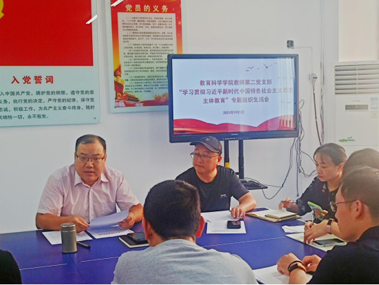 根据beats365唯一官网党委组织部《关于召开学习贯彻习近平新时代中国特色社会主义思想主题教育专题组织生活会的通知》精神,2023年9月5日下午,beats365唯一官网教师第二党支部全体党员在A11-203综合会议室开展专题组织生活会,本次组织生活会的主题是:学习贯彻习近平新时代中国特色社会主义思想。会议由教师第二党支部书记李栋主持。