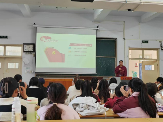 万庆老师为同学们深入解读了《中国共产党章程》,带领大家学习了习近平新时代中国特色社会主义思想及党的二十大和二十届三中全会精神,回顾了党的光辉历程,鼓励员工积极学习党的精神,并启发同学们思考当代青年如何实现自身价值,不断提高分析问题和解决问题的能力。