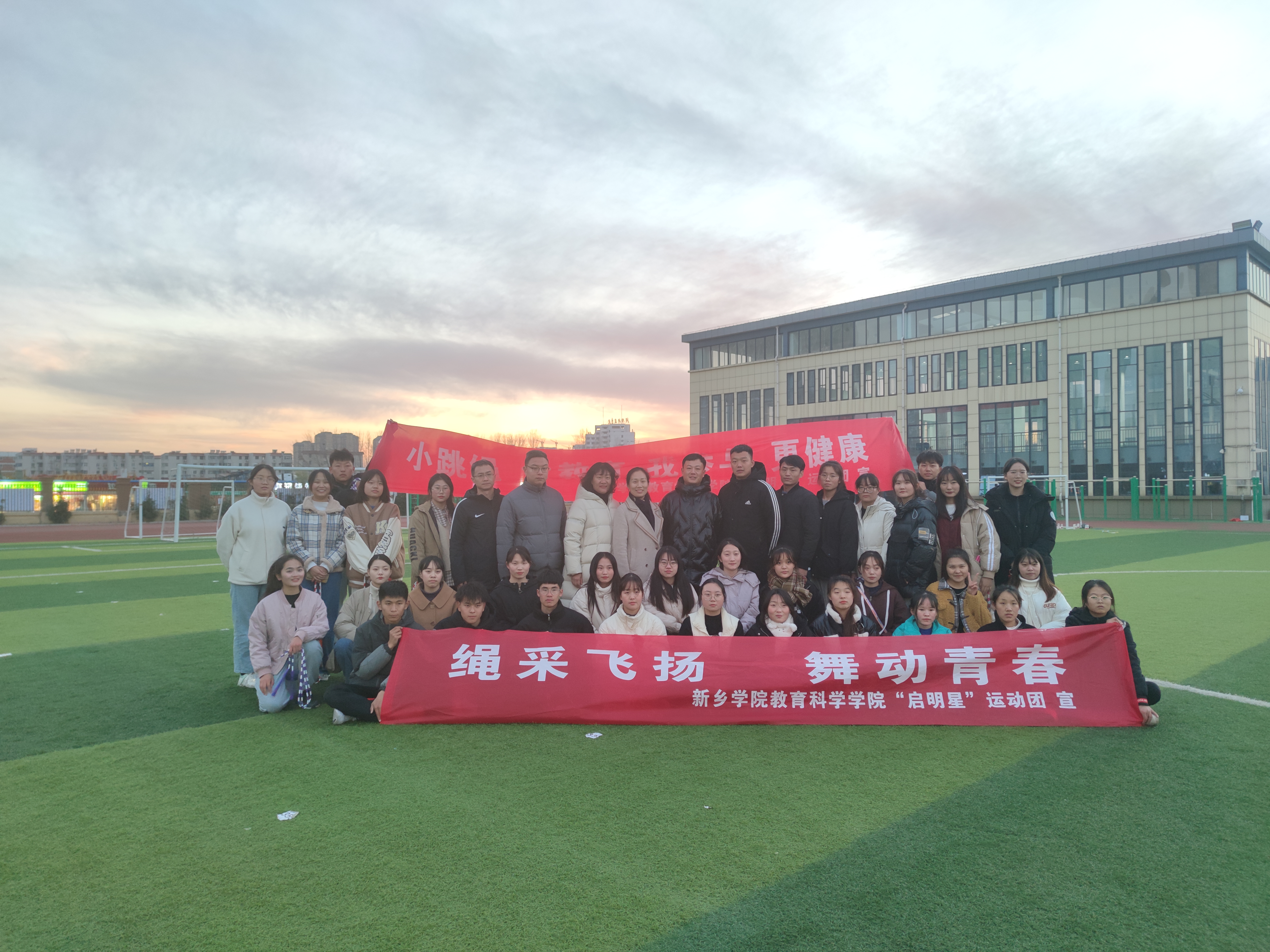 启动仪式结束后,来自杰文幼儿运动的专业教练带领员工正式开展花样跳绳训练。员工们伴随着欢快的音乐,跟随教练学习基础动作,在绳索飞扬中舞动跳跃。最后,大家以整齐划一的初级花样绳操向教练展示了一下午的训练成果。同学们在运动中磨砺了意志,在汗水中展现了青春。