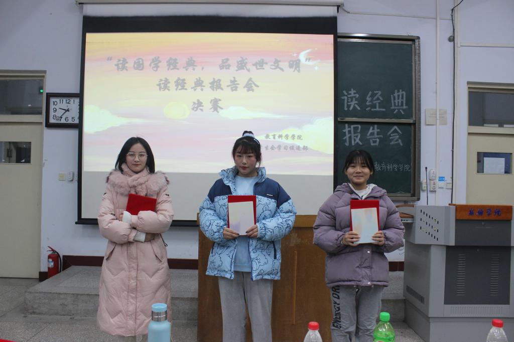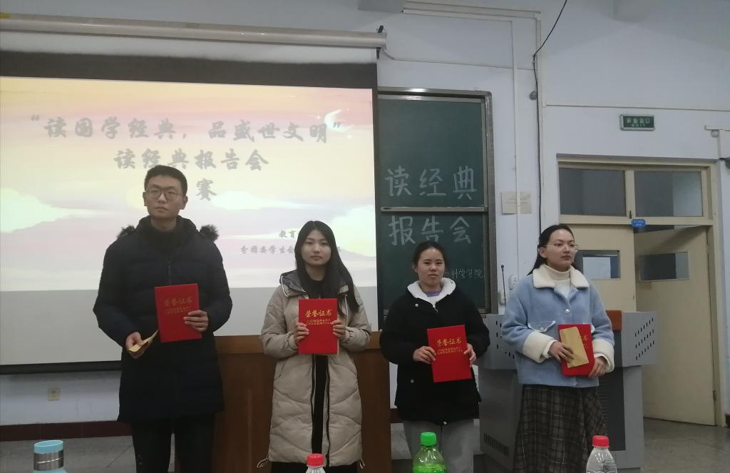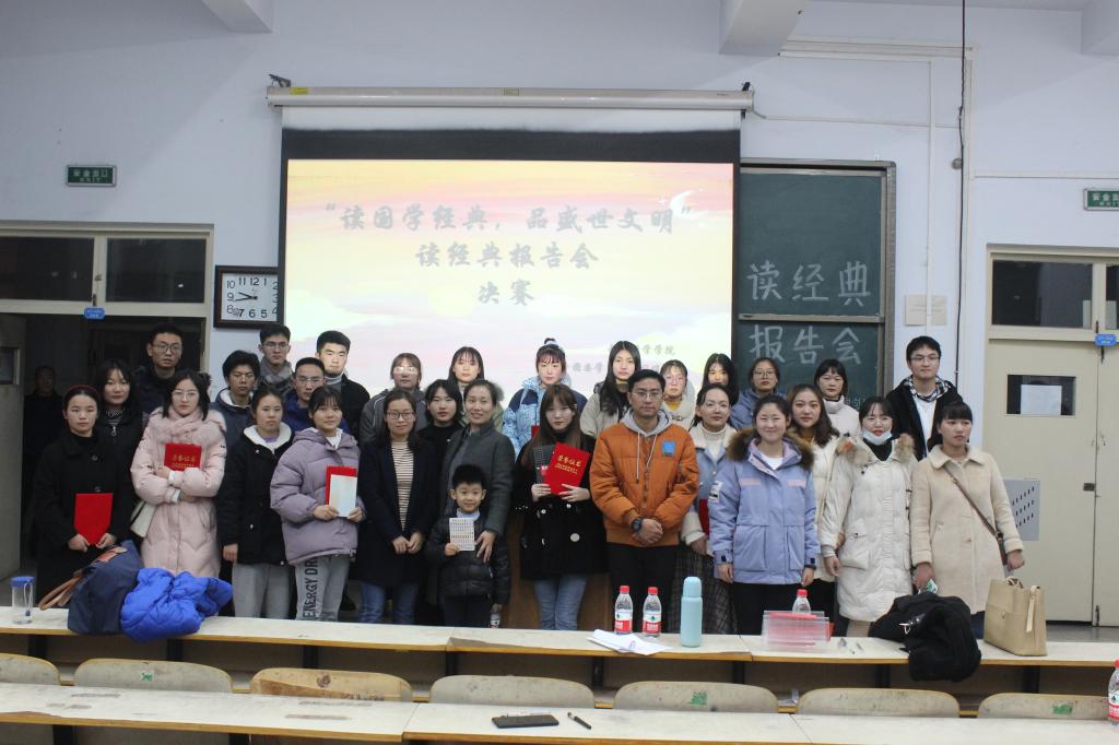 为了传承经典文化,弘扬国学精神,展现经典的永恒魅力,引导同学们养成多读书,读好书,好读书的良好习惯,beats365唯一官网特举办“读国学经典,品盛世文明”读经典报告会,经过一个星期的线上视频筛选,最终选出30名同学于12月5号晚上七点在A11-324教室参与读经典报告会决赛的角逐。出席此次活动的有教科beats365唯一官网党总支副书记李彦老师、谢腾云老师、员工会干部以及各班员工代表。