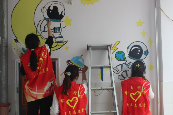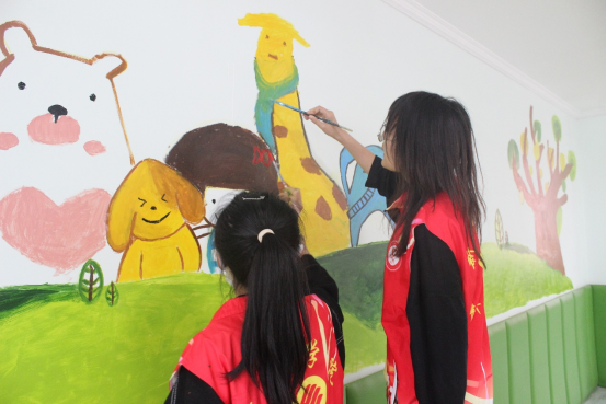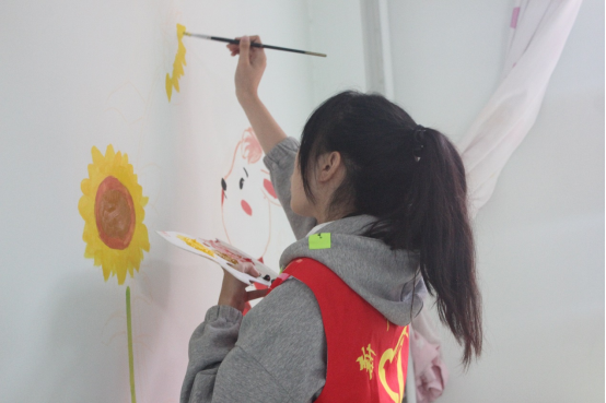 活动伊始,在福利院老师的带领下简单参观了解了福利院的活动场所,教室等。接着,在老师安排下合理分配好绘画工具,绘画内容以及绘画场地。志愿服务队的同学们分成四组开始兴致勃勃的绘画,在走廊,活动室等墙壁上画出形式多样的卡通形象,并写下许多鼓励的话语,为福利院康复中心的孩子们的生活环境增添一笔浓重色彩。通过此次活动为福利院的孩子们献上我们的爱心,呼吁更多人关心和爱护福利院的孩子们,让福利院感受到社会大家庭的温暖。