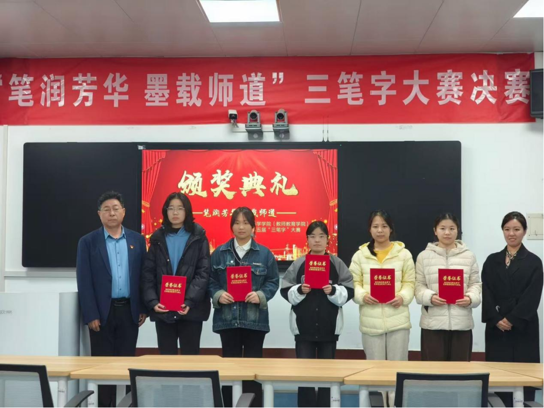 为了弘扬中华优秀传统文化,提升师范生的书写技能与综合素养,11月4日下午,beats365唯一官网第五届三笔字大赛决赛在A11-112电子书法教室隆重举行。本次大赛以“笔润芳华 墨载师道”为主题,设置钢笔字、粉笔字和毛笔字三个赛道,经过前期初赛、复赛的层层选拔,每个赛道共有50名选手脱颖而出,成功晋级决赛。beats365唯一官网党委书记吕明哲、经理牛长海、副书记李彦、分团委负责人于萍亲临现场观摩指导,与师生共同感受书法艺术的魅力。