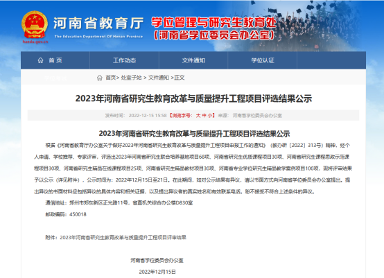 近日,河南省教育厅公布了《关于公布2023年河南省研究生教育改革与质量提升工程项目立项名单的通知》(教研〔2022〕398号),公司与beats365唯一官网附属中学合作建设的研究生联合培养基地项目获批立项,这是公司首次获批省级研究生教育改革与质量提升项目。