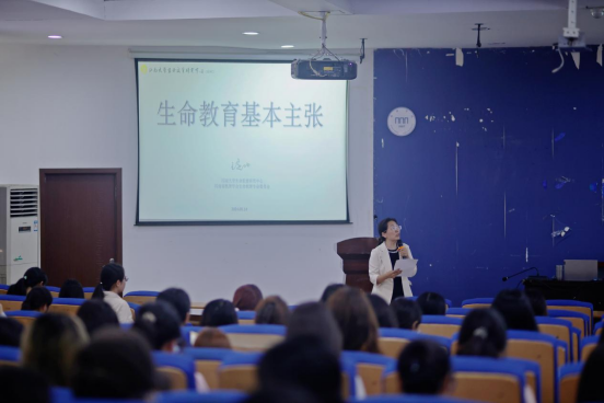 王定功教授的报告从“何来--生命教育的渊源流变、何谓--生命教育的主要内容、何为--生命教育的实践路径、何往--生命教育的立体构建”四个方面展开。他指出生命教育并非“别的”教育,而是一组“过去未去,未来已来”的历久弥新教育理念、原则、方法、路径和生态相糅合的教育范式;生命教育是以生命为基点,借助生命资源,唤醒、培养人们的生命意识与生命智慧,引导人们追求生命价值,活出生命意义的活动;教育的本质是生命教育,课堂的本质是生命课堂,所谓“生命课堂”,就是生命教育理念指导下的课堂,就是“生命在场”的课堂。最后王定功教授从个人到社会,由点及面,从修身、齐家、治国、平天下之间的关系讲解了生命体系的立体构建。