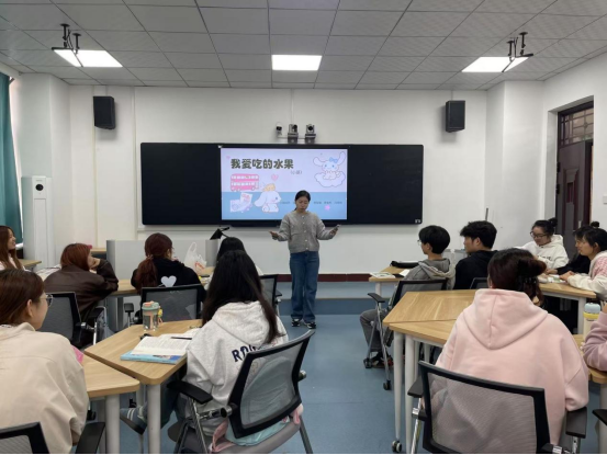 然后,开展模拟教学活动。围绕教学大纲,《幼儿语言课程与活动指导》课程设有课内实践教学环节,为员工提供模拟教学的机会,通过现场观摩、生生互评、教师点评与指导等方式,培养员工设计、准备、组织实施幼儿园语言教育活动的实践能力。本次活动中,员工以组为单位,依次走上讲台,对小组教研过程进行汇报并开展模拟教学。根据每个小组的教学设计与教学实施情况,梁璐从教学设计、教学实施、教学延伸与教学评价等方面给予员工具体指导。